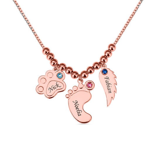 Personalized Paw Print & Baby Feet & Angel Wing Necklace