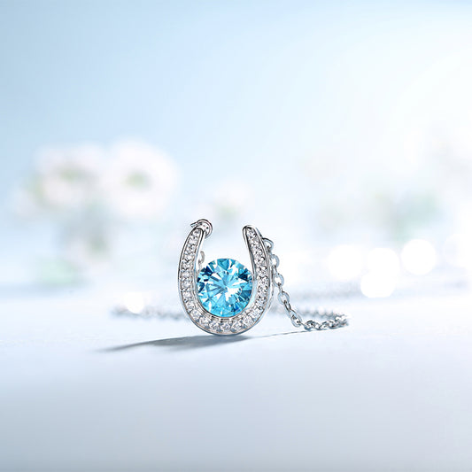 Custom Lucky Necklace with Horseshoe Birthstone Pendant