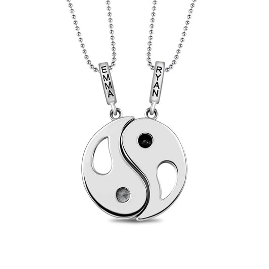 Custom Yin Yang Necklace with 2 Pendants & Birthstones
