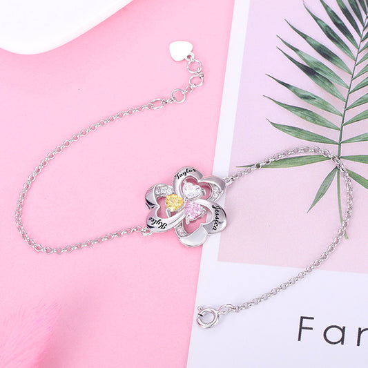 Personalized Double Heart Bracelet with Birthstones in Silver