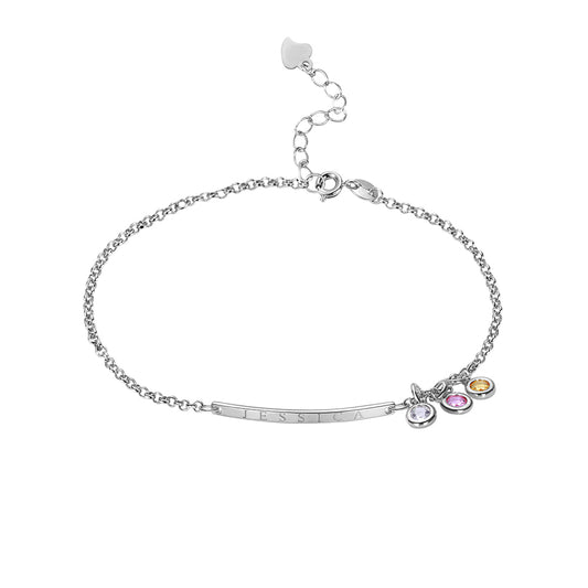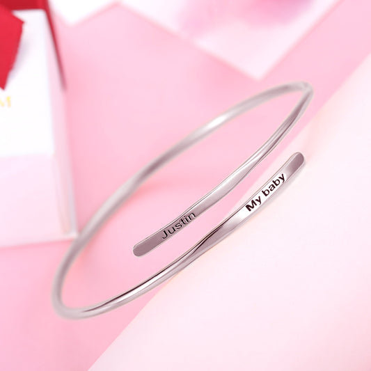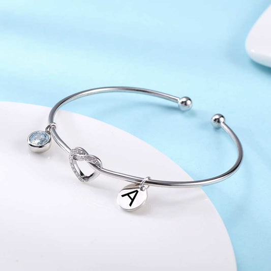 Personalized Bangle Bracelet with Heart Pendants in Silver