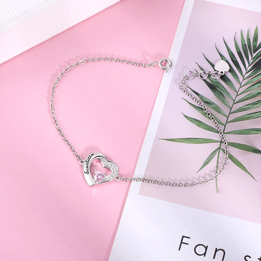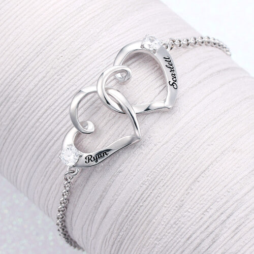 Custom Double Heart Engraved Names Bracelet Sterling Silver