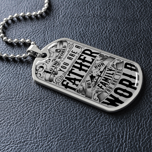 To The World You Are A Father But To Our Family You Are The World (Graphic Dog Tag Ball chain necklace)