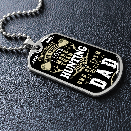 There Aren't My Things I Love More Than Hunting But One Of Them Is Being A DAD (Graphic Dog Tag Ball chain necklace)
