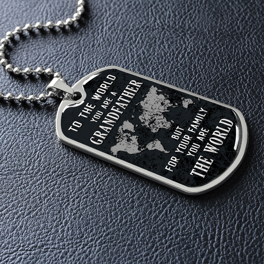 To The World You Are A Grandfather But To Your Family You Are The World (Graphic Dog Tag Ball chain necklace)