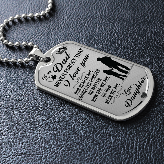 Dad Never Forget That I Love You (Graphic Dog Tag Ball chain necklace)