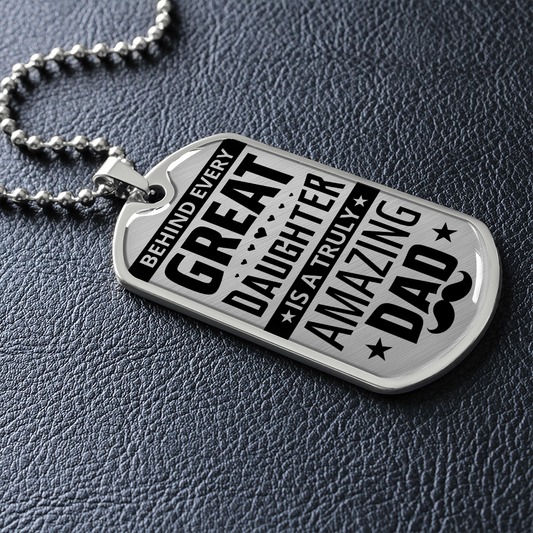 Behind Every Great Daughter Is A Truly Amazing Dad (Graphic Dog Tag Ball chain necklace)