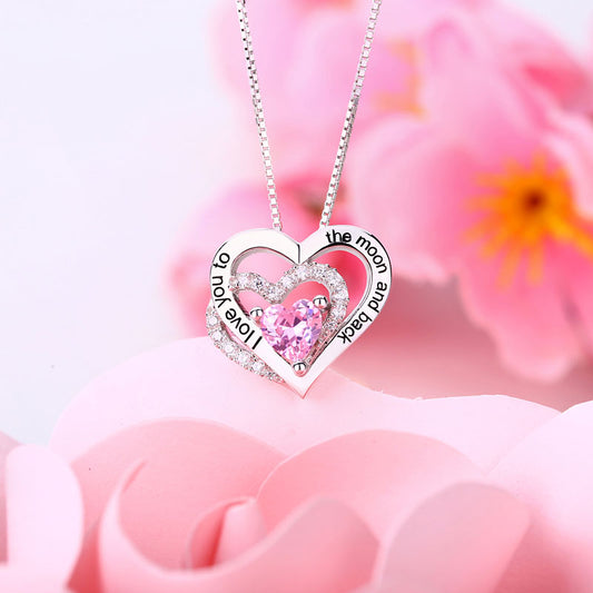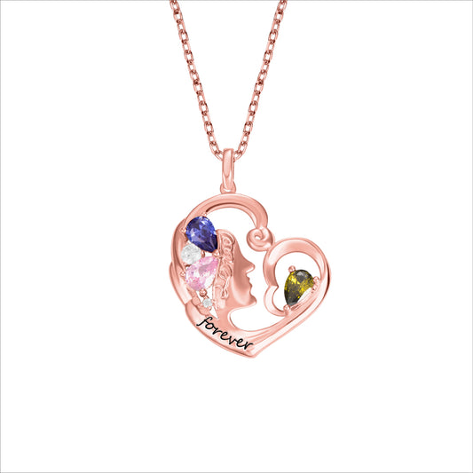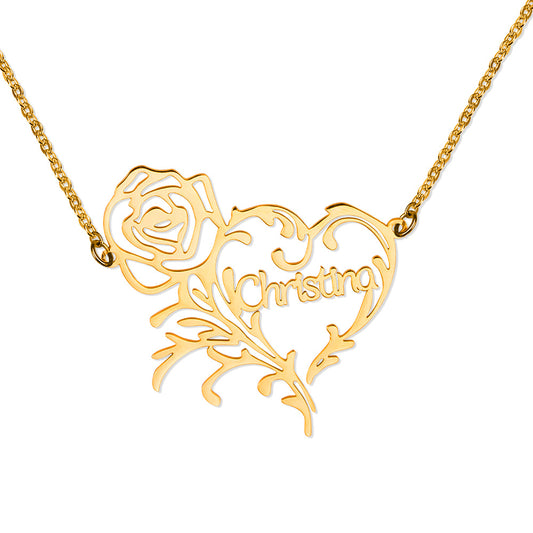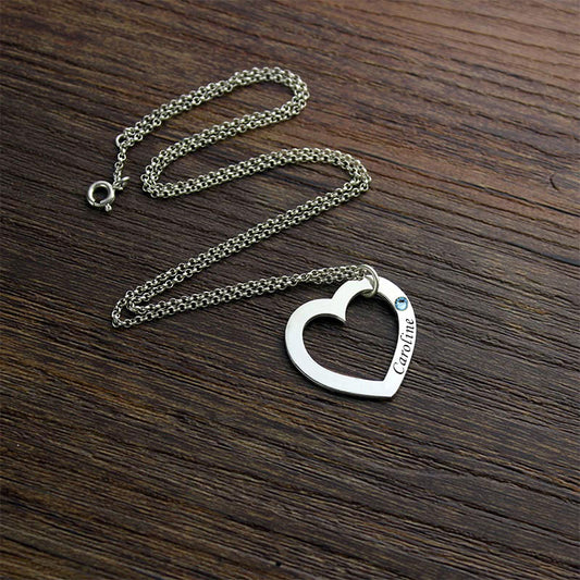Personalized Rose Heart Necklace with Birthstone Sterling Silver