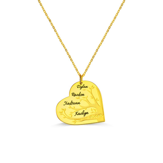 Personalized 1-12 Names Heart Family Tree Necklace Sterling Silver