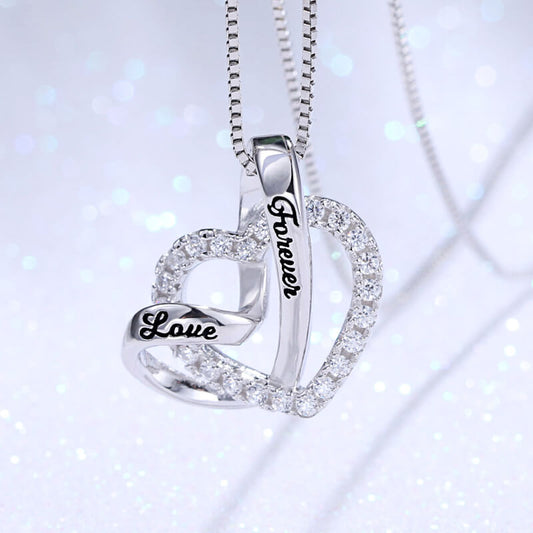 "Love Forever" Heart In Heart Necklace Sterling Silver