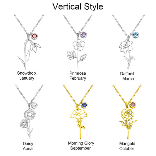 Custom Birthstone Flower Necklace Sterling Silver 925
