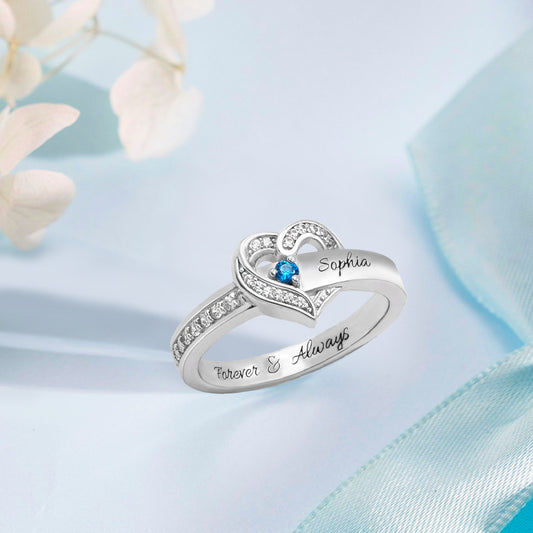 Personalized Heart 1 Birthstone Ring Family Ring Gift for Her