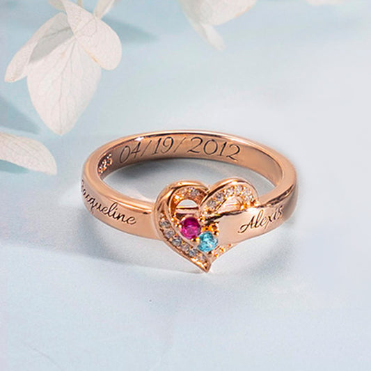 Personalized Heart 2 Birthstones Ring Family Ring Gift for Her