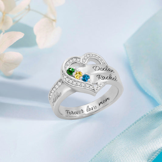 Personalized Heart 3 Birthstones Ring Family Ring Gift for Her