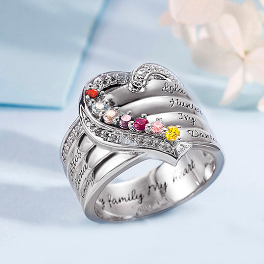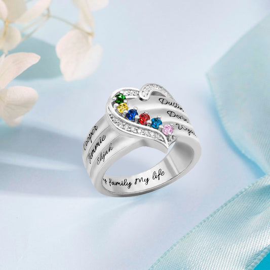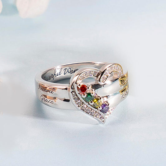 Personalized Heart 6 Birthstones Ring Family Ring Gift for Her