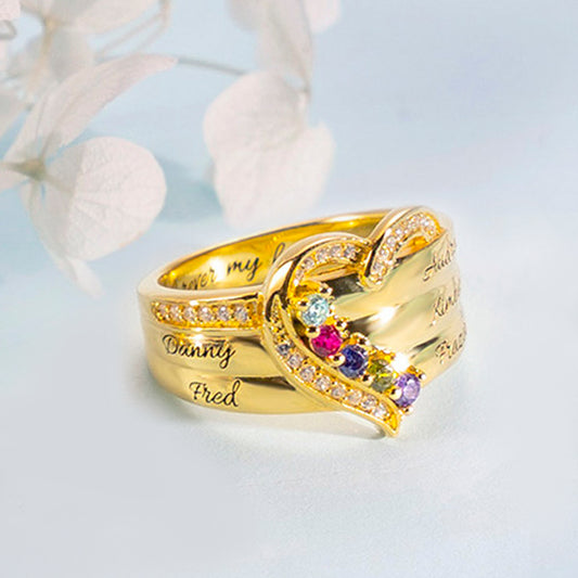 Personalized Heart 4 Birthstones Ring Family Ring Gift for Her