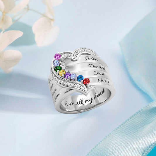 Personalized Heart 8 Birthstones Ring Family Ring Gift for Her