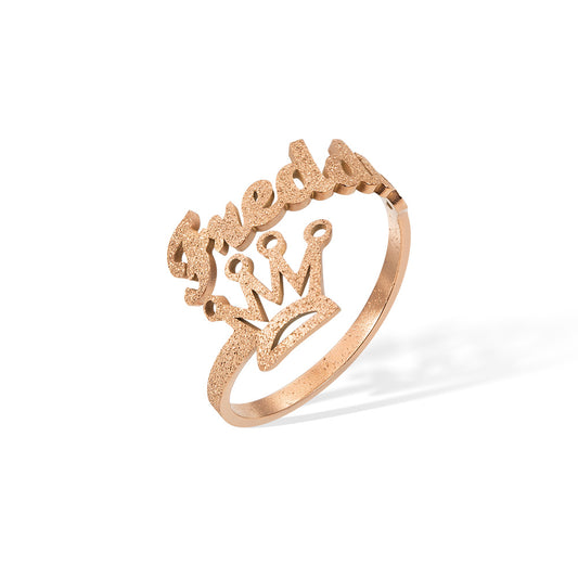 Personalized Crown Name Sand Face Open Ring