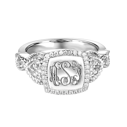 Stackable Monogram Silver Ring With Cubic Zirconia