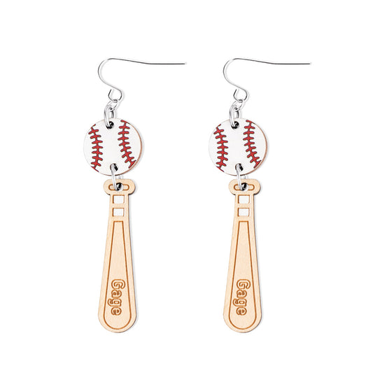 Personalized Name Baseball Earrings, Wooden Baseball Bat Jewelry, Sports Jewelry, Softball Earrings, Gift for Sports Mom/Daughter/Baseball Fan