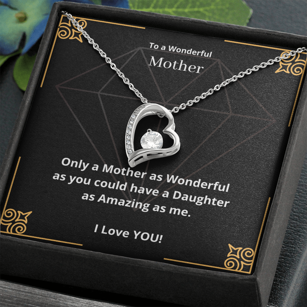 To a Wonderful Mother. Only a Mother as Wonderful as you could have a Daughter as Amazing as me. (Forever Love necklace)