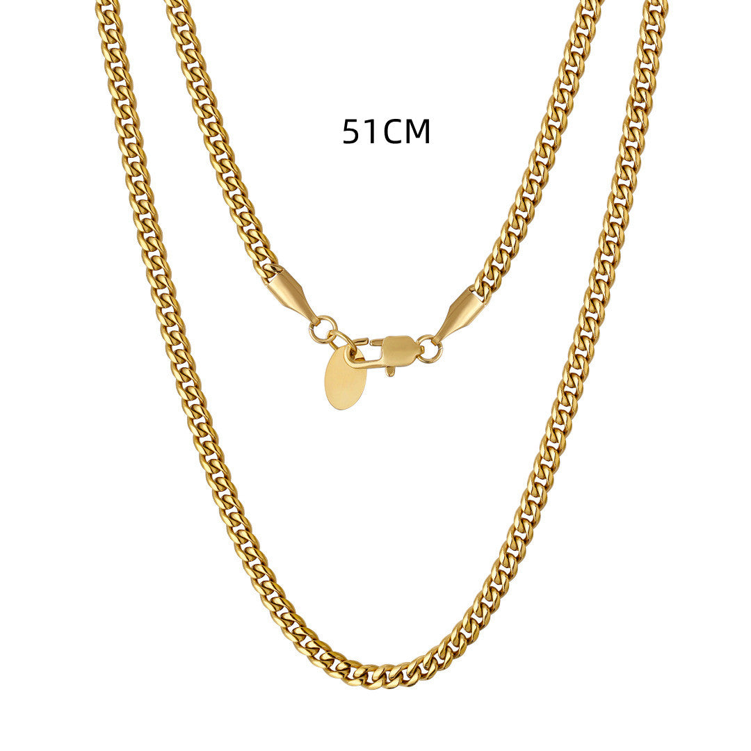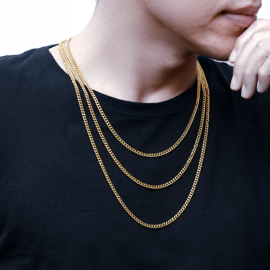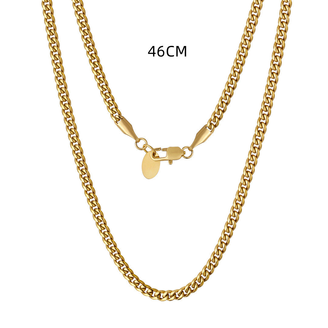 3mm Stainless Steel Cuban Link Chain Necklace 18K Gold