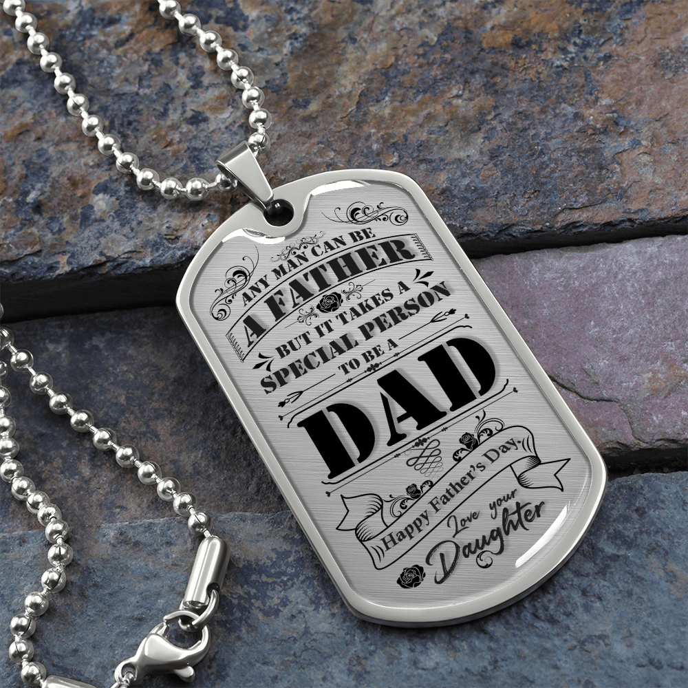 Any Man Can Be A Father But It Takes A Special Person To Be A Dad (Graphic Dog Tag Ball chain necklace)