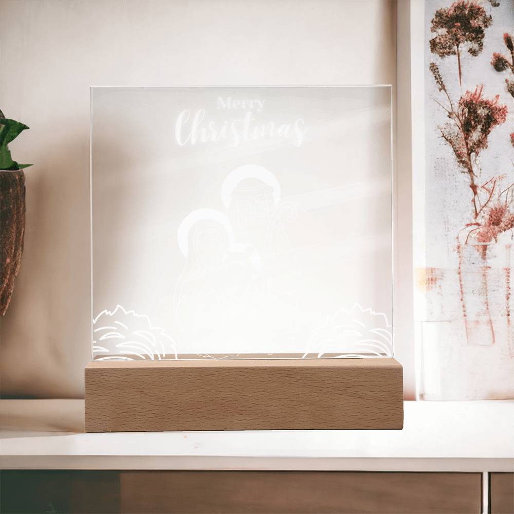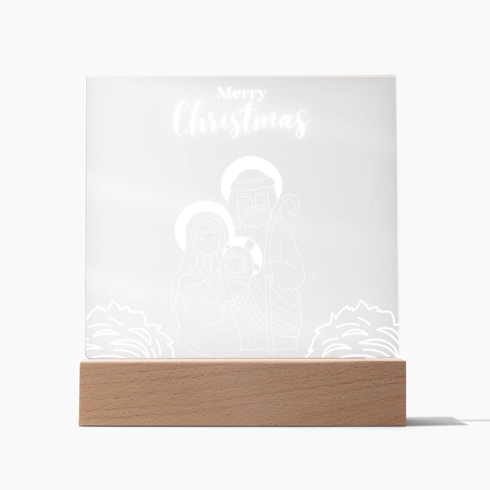 Immerse yourself in the profound beauty of Christmas with our Nativity Close-Up Acrylic Plaque. This square masterpiece artfully zooms in on Mary, Joseph, and baby Jesus, capturing the essence of devotion and love in intricate detail. The Wooden LED Base adds a warm and tender glow, creating an atmosphere of reverence and inviting reflection on the miracle of the season.
