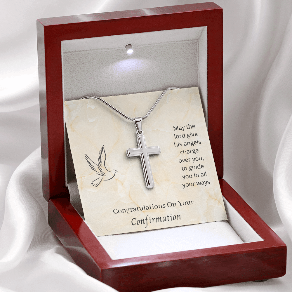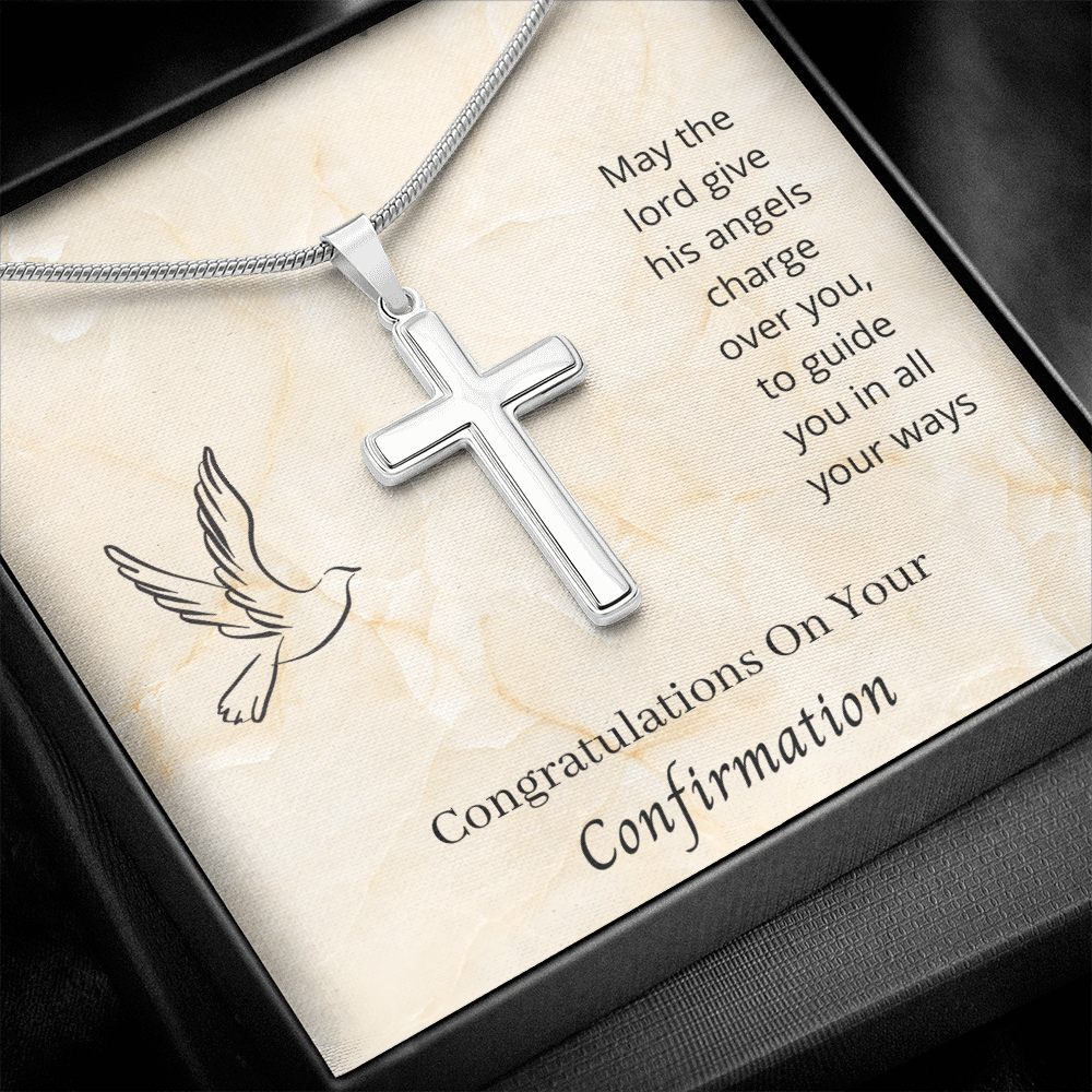 Congratulations On Your Confirmation - May The Lord Give His Angels Charge Over You (Personalized Cross necklace)