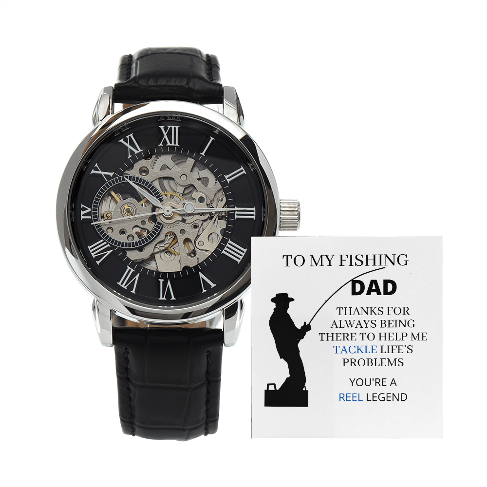 Give the gift of luxury with this handsome and daring timepiece. The Men's Openwork Watch is the perfect blend of classic design and modern styling, making it an essential accessory for your remarkable style. This watch sports a genuine leather strap, is splash resistant, and has increased durability thanks to hardened mineral glass. Our unique skeleton dial feature allows you to peer directly into the inner workings of your watch. Beautifully crafted to be automatic, this watch requires motion instead of batteries. You will keep precise time simply by wearing it, no winding necessary. This magnificent piece makes the perfect gift for yourself or any man in your life looking to add a tasteful element into his wardrobe.