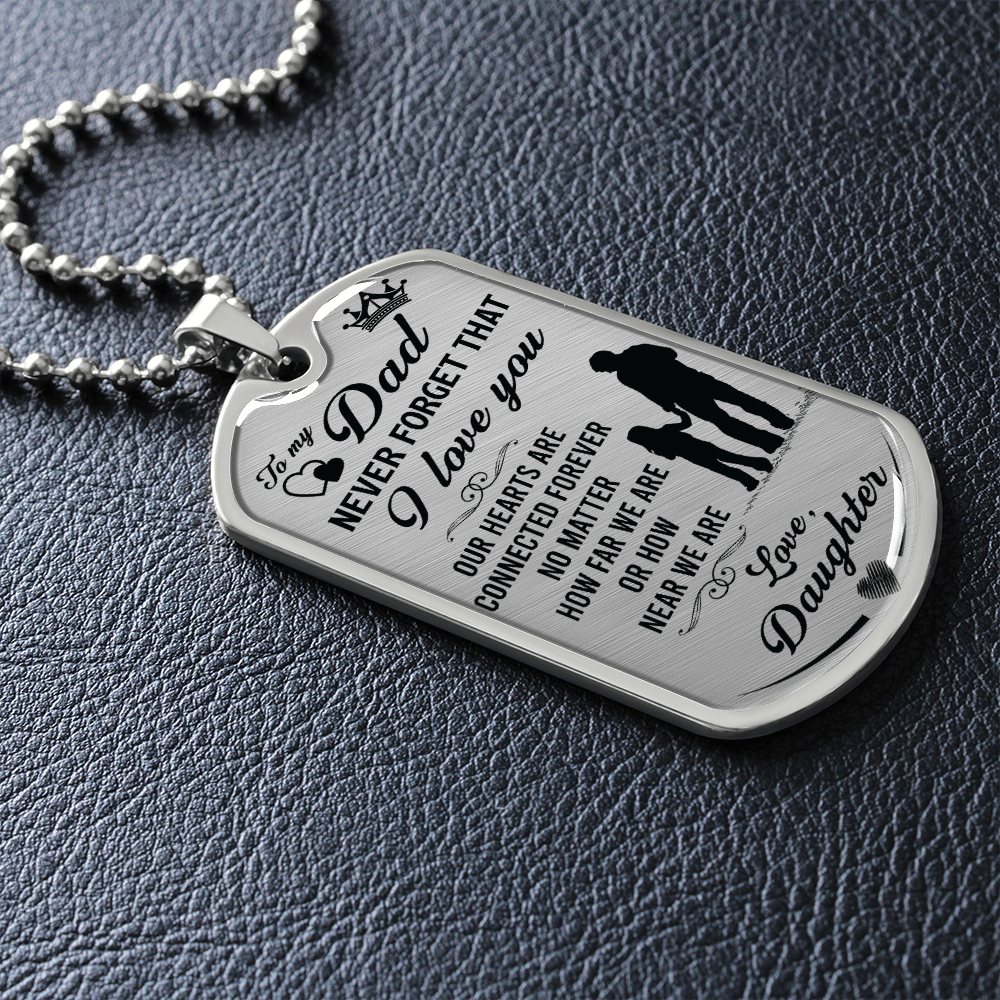 Dad Never Forget That I Love You (Graphic Dog Tag Ball chain necklace)