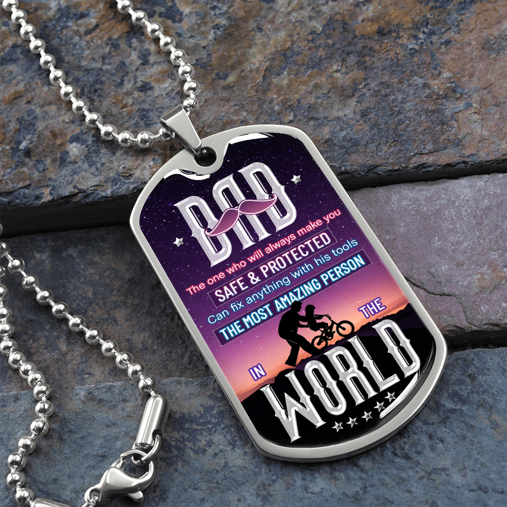 DAD The One That Will Always Make You Safe & Protected (Graphic Dog Tag Ball chain necklace)