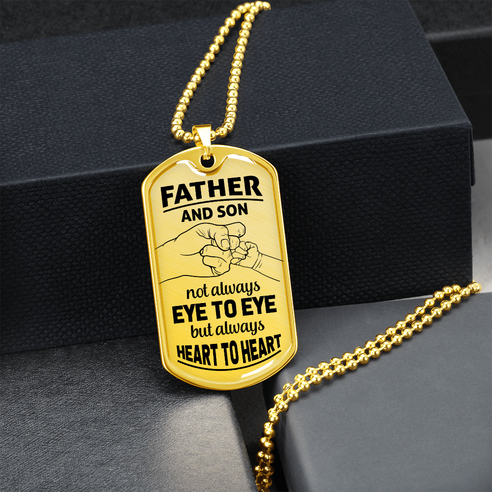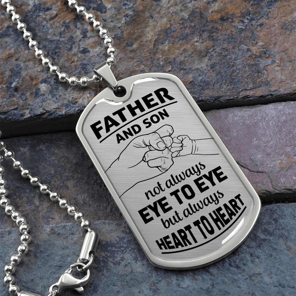 Father And Son Not Always Eye to Eye But Always Heart To Heart (Graphic Dog Tag Ball chain necklace)