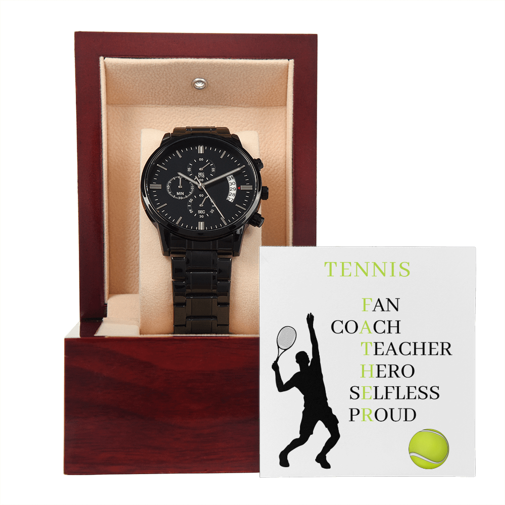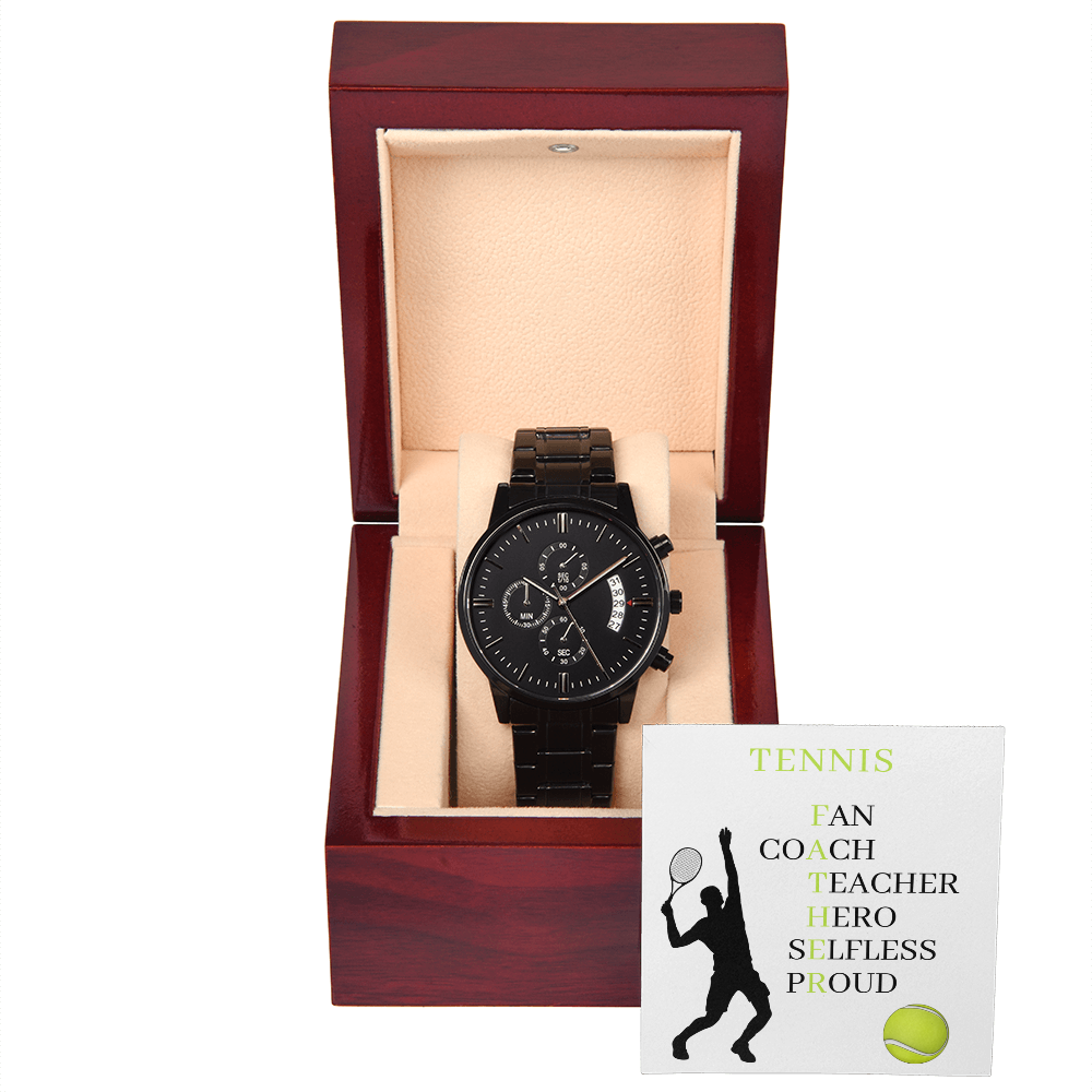 A handsome gift that can withstand constant use, this Black Chronograph Watch is perfect for all the special men in your life. A thoughtful present to your groomsmen, an anniversary memento, or a long-lasting keepsake for Father’s Day - it's a versatile piece sure to warm hearts and create smiles. Featuring a three-dial face, calendar function, and luxury pointer in a water-resistant and scratch-proof vessel.
