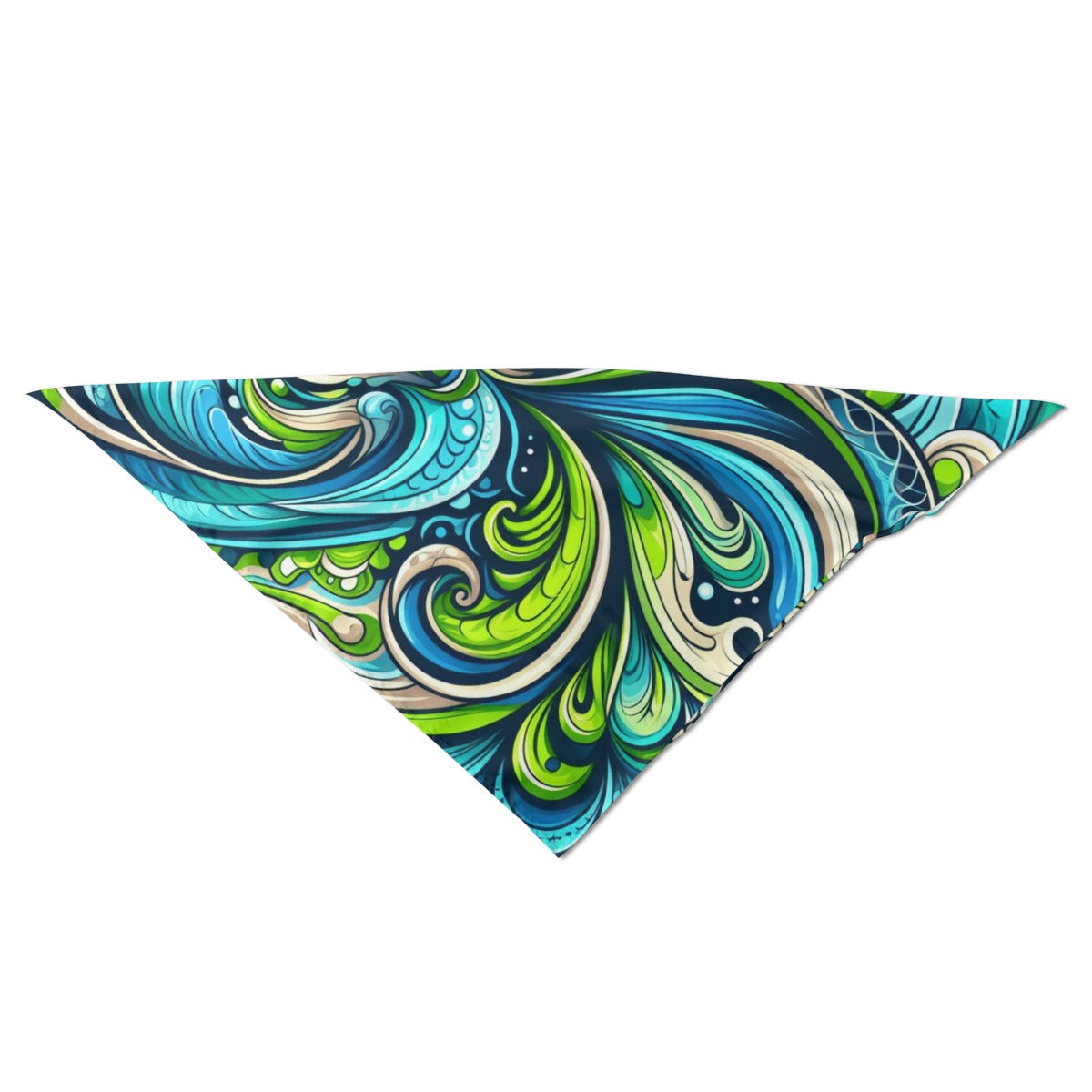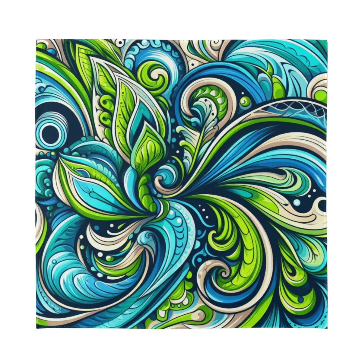 Head Scarf / Bandana - Blue and Green Leaf Mandala