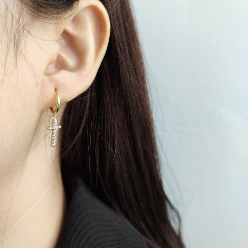 Elevate your style with our stunning iced-out cross earrings. Crafted from high-quality 925 sterling silver, these earrings are not only durable but also long-lasting. Choose from two luxurious finishes, white gold or yellow gold, to match your unique taste and preferences. Perfect for special occasions or everyday wear, these earrings are sure to turn heads and make a statement. Don't miss out on this must-have accessory - order now!