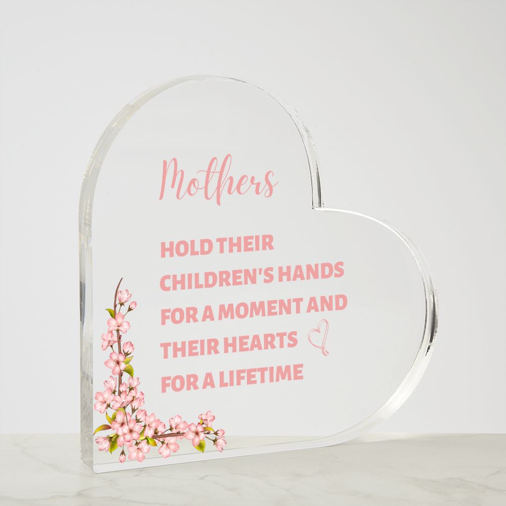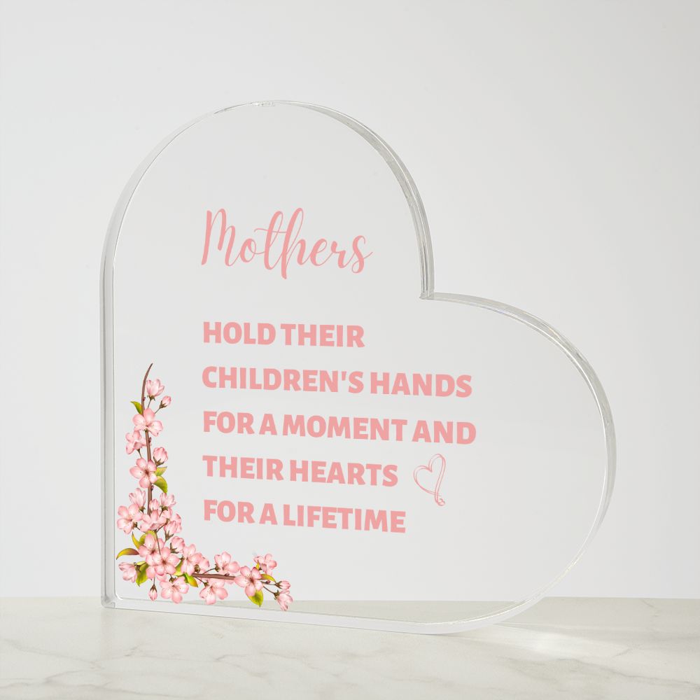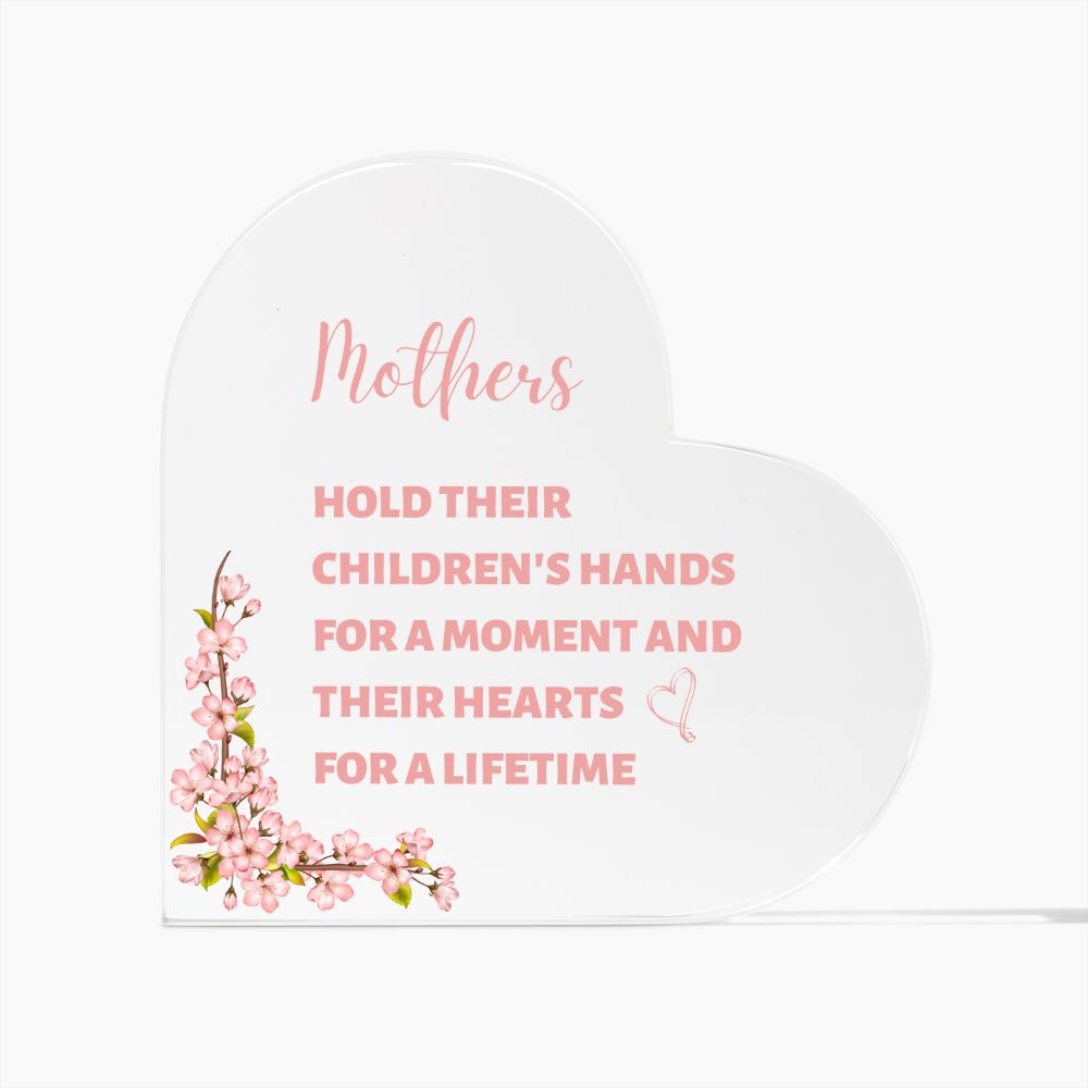 Mother's hold their children's hand for a moment and their hearts for a lifetime (Acrylic Heart Plaque)