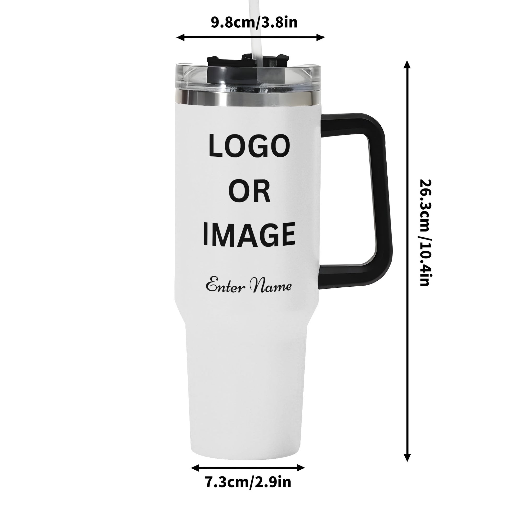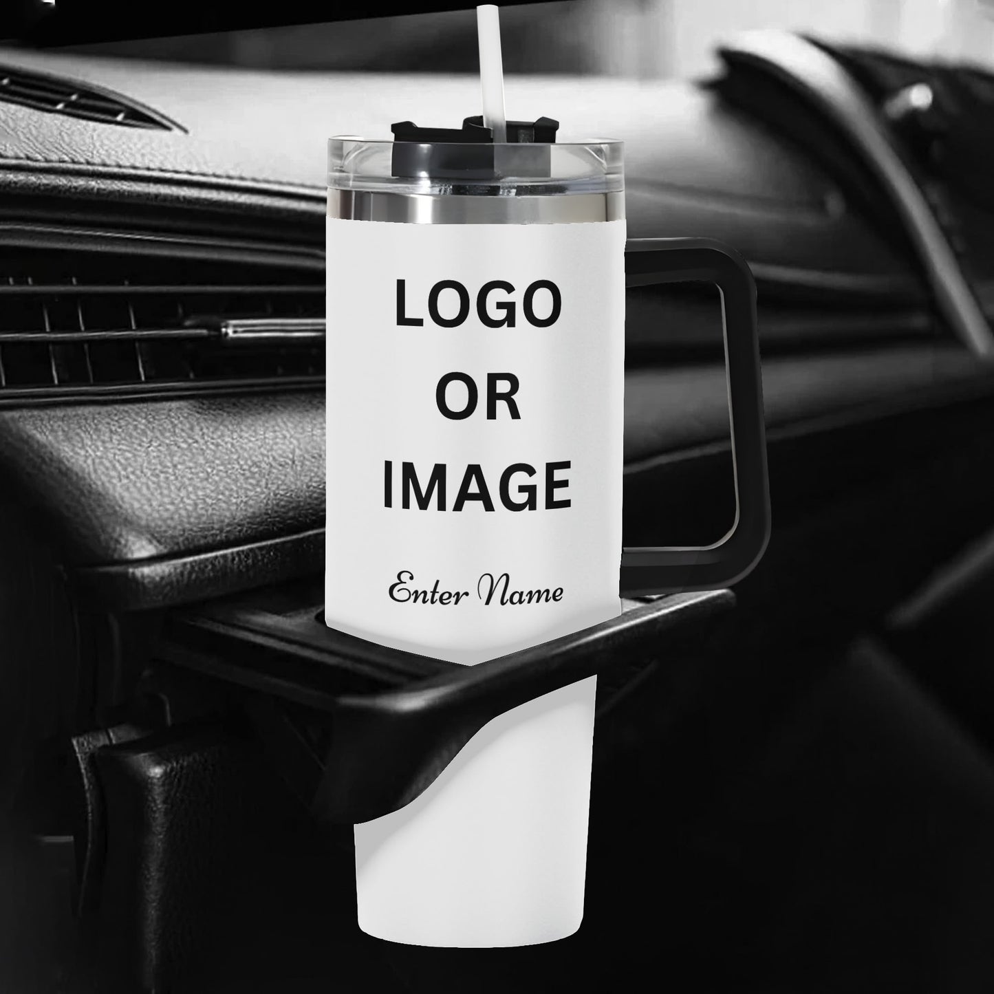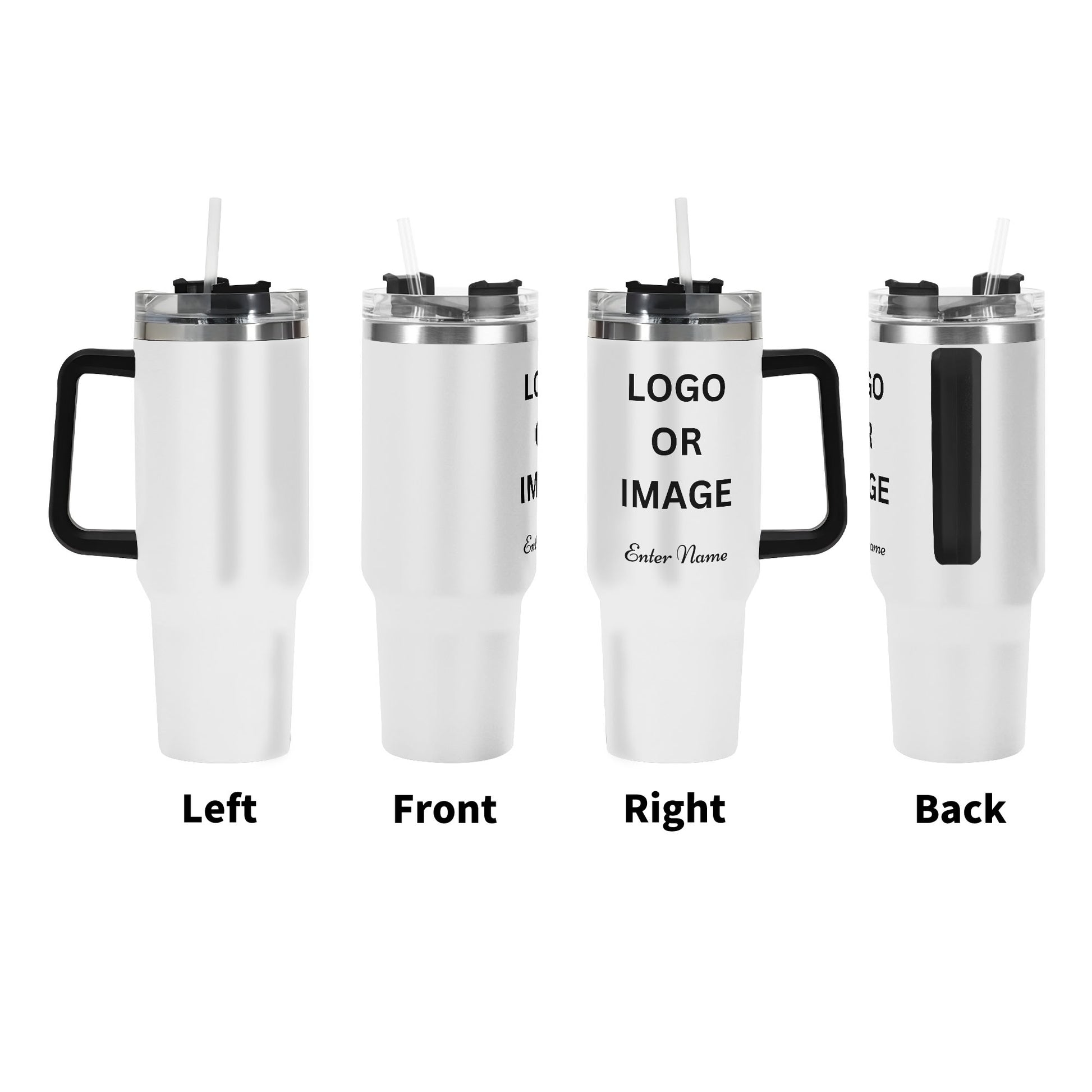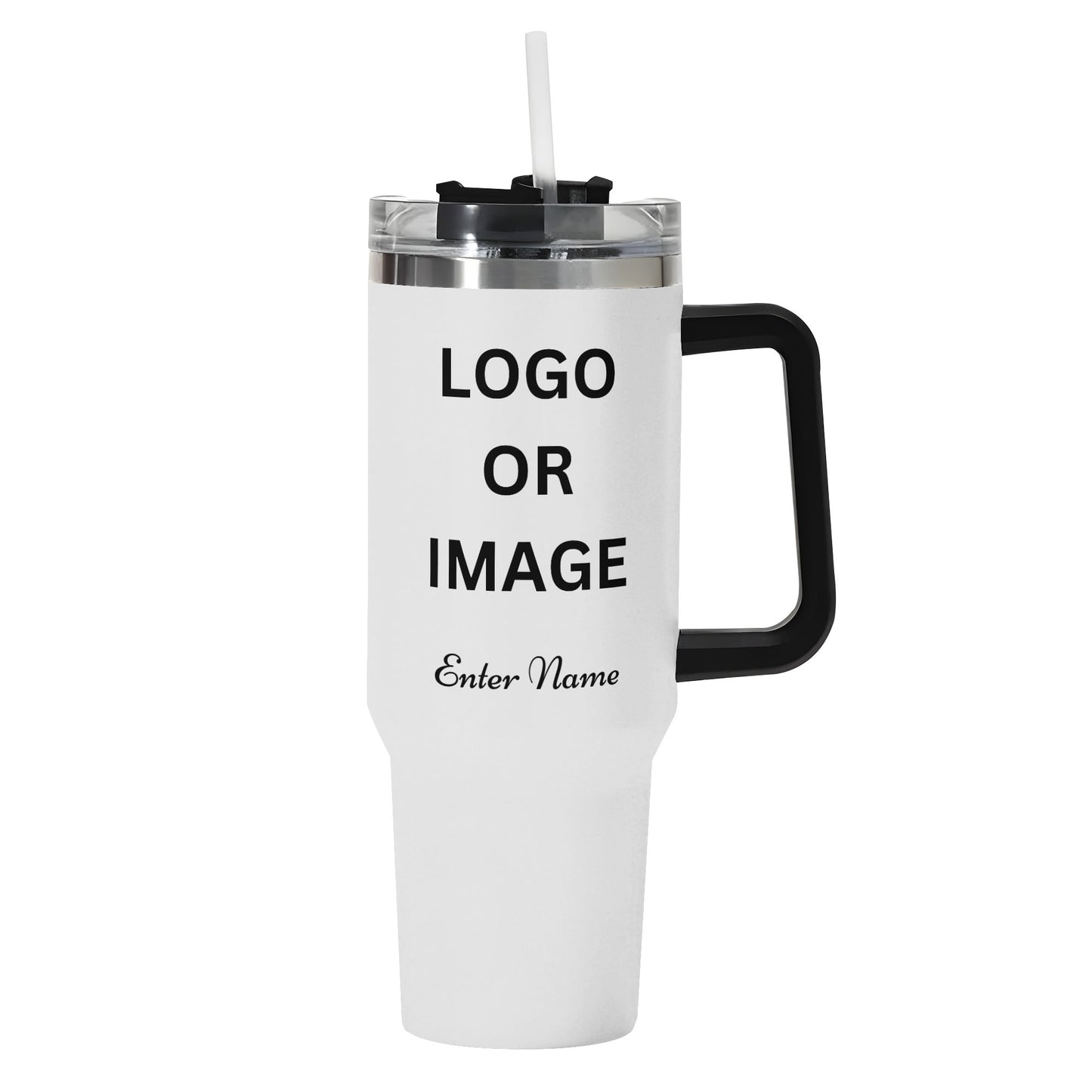 Personalized 40oz Stainless Steel Tumbler Gift With Black Handle and Straw