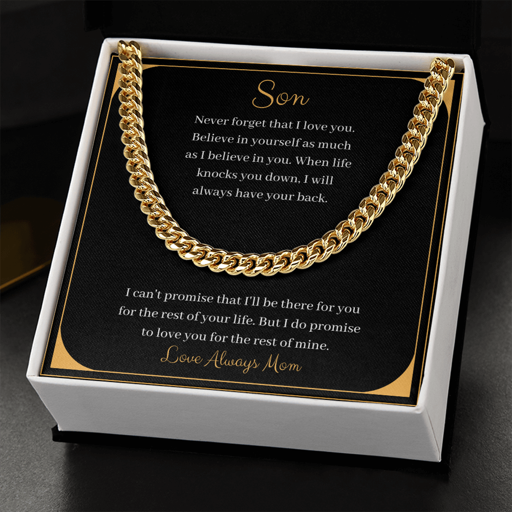 Son. Never forget that I love you. Mom (Cuban Link Chain Necklace)