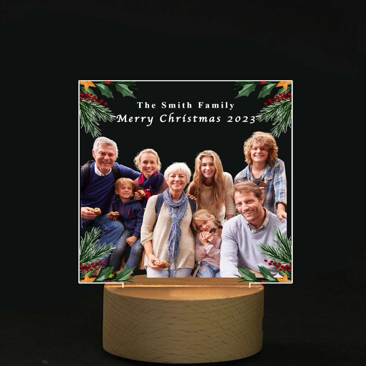 Christmas Mistletoe 2 border - Family photo (Square Shape Acrylic board with Light)