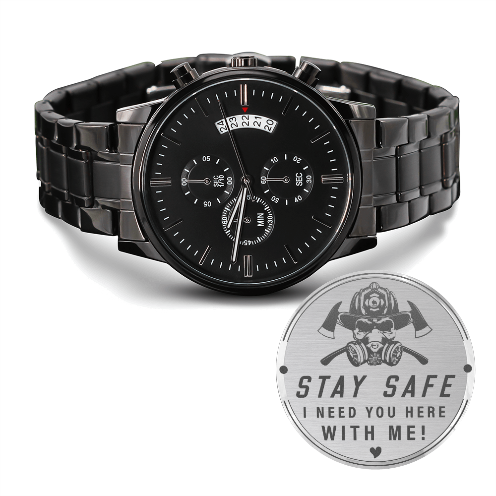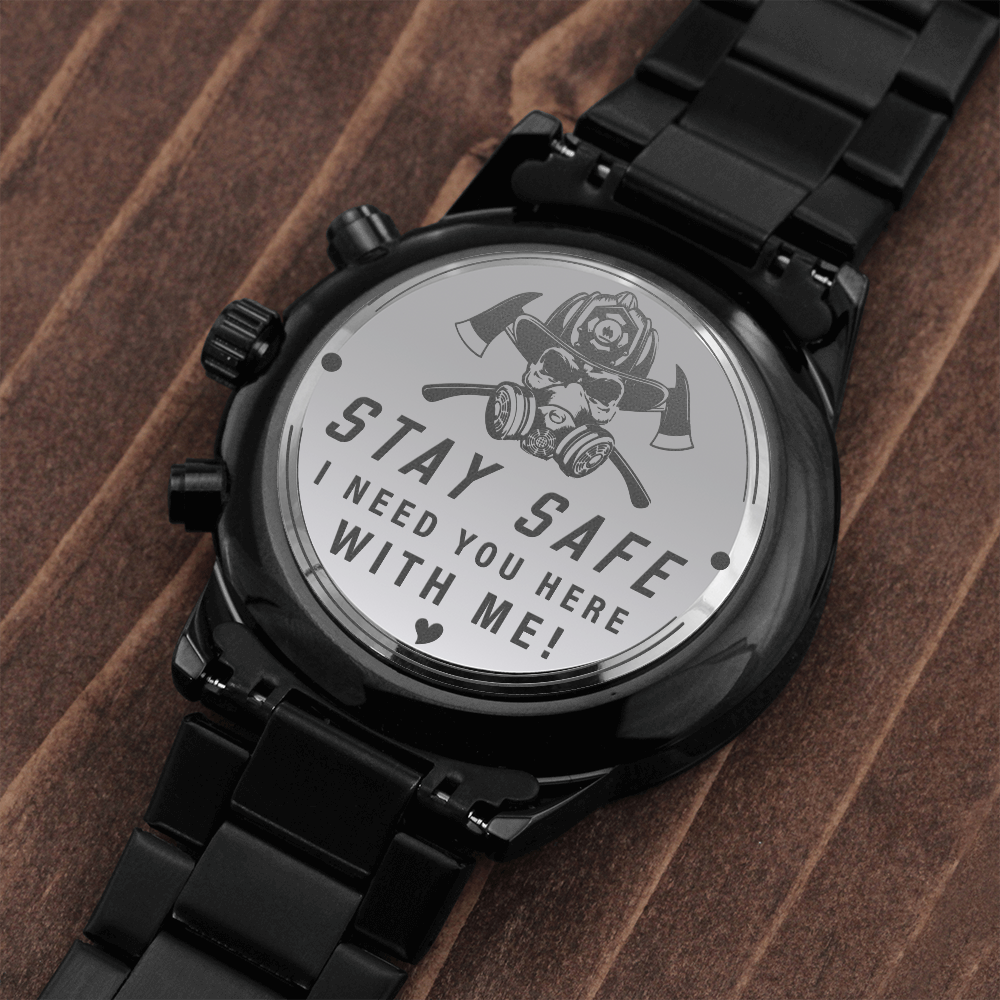Stay Safe I Need You Here With Me Fire Fighter (Black Chronograph Watch)