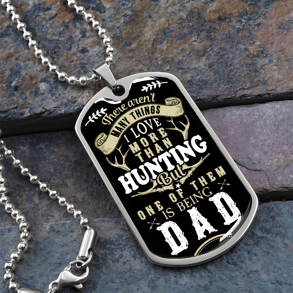 There Aren't My Things I Love More Than Hunting But One Of Them Is Being A DAD (Graphic Dog Tag Ball chain necklace)