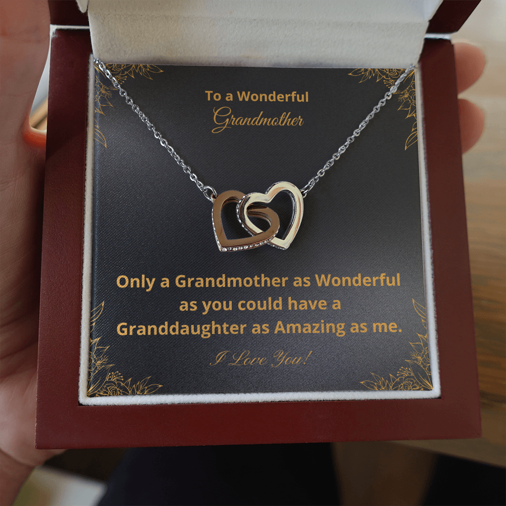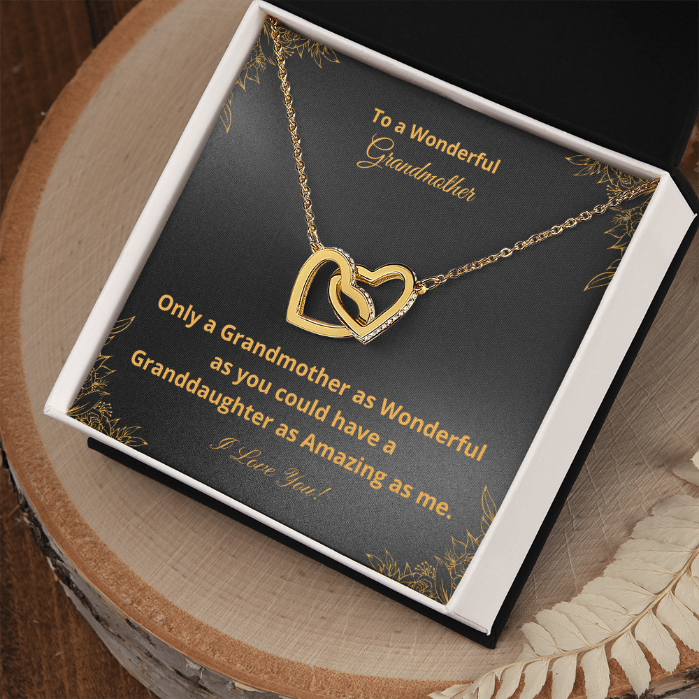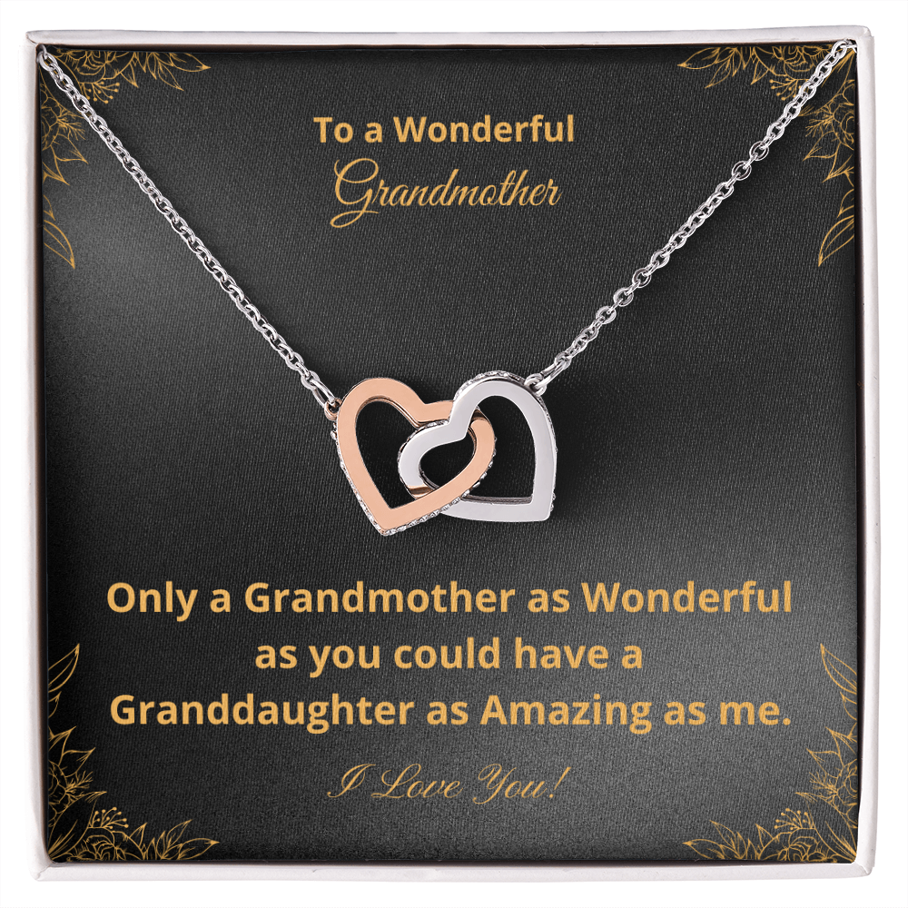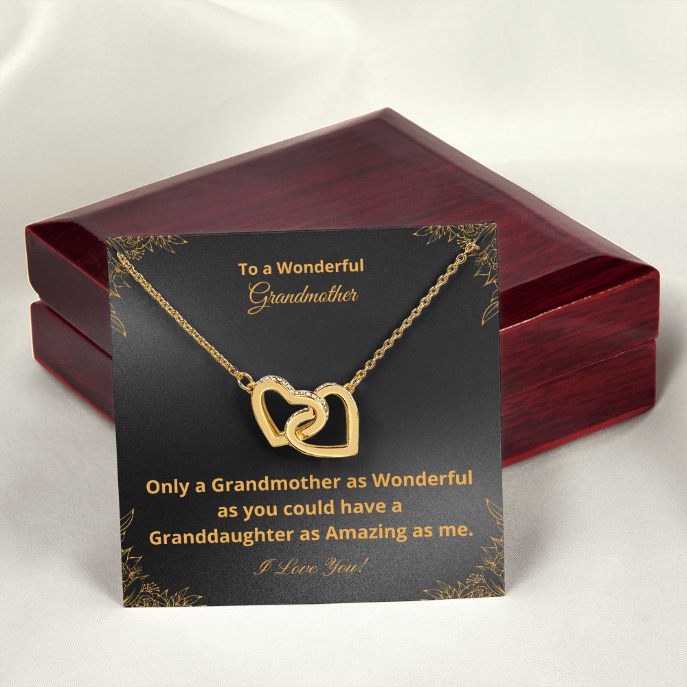 To A Wonderful Grandmother - Amazing Granddaughter - Black and Gold (Interlocking Hearts necklace)