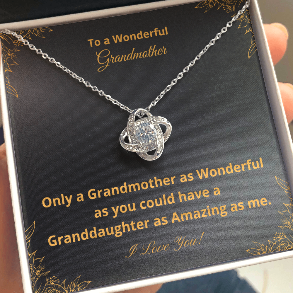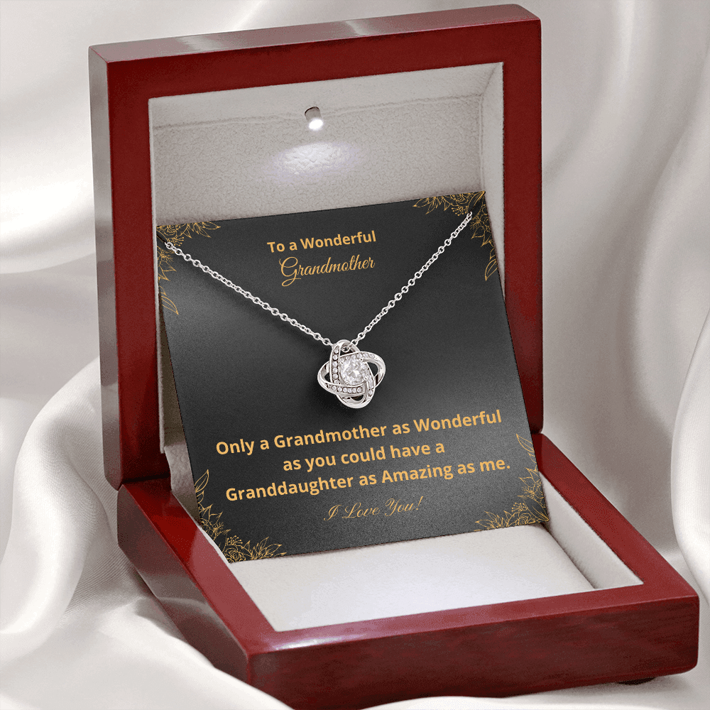 To A Wonderful Grandmother - Amazing Granddaughter - Black and Gold (Love Knot necklace)