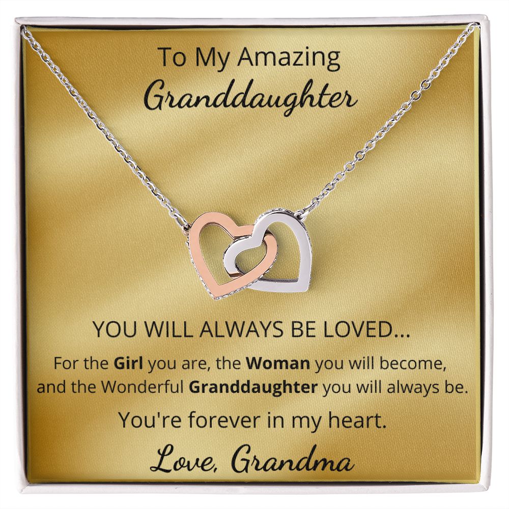 To My Amazing Granddaughter - You're forever in my heart (Interlocking Hearts necklace)