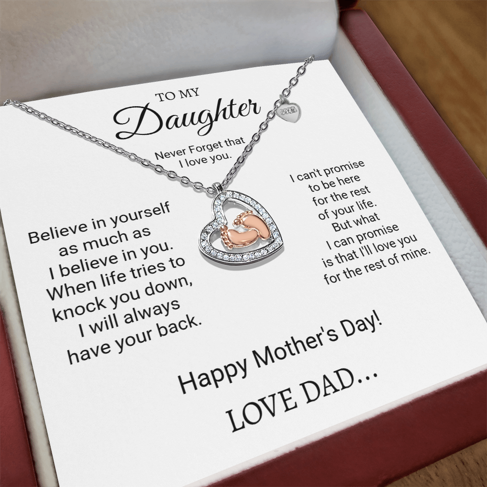 To My Daughter - Never forget that I love you - Happy Mother's Day - Love Dad (Baby Feet Heart Necklace)