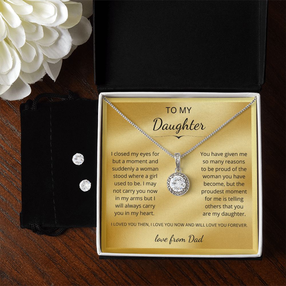 To my Daughter - Suddenly a woman stood where a girl used to be (Eternal Hope necklace and earrings set)