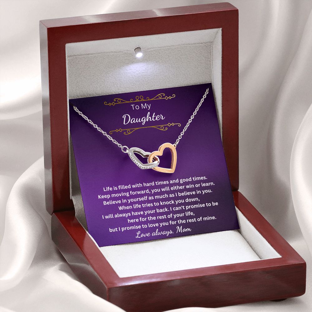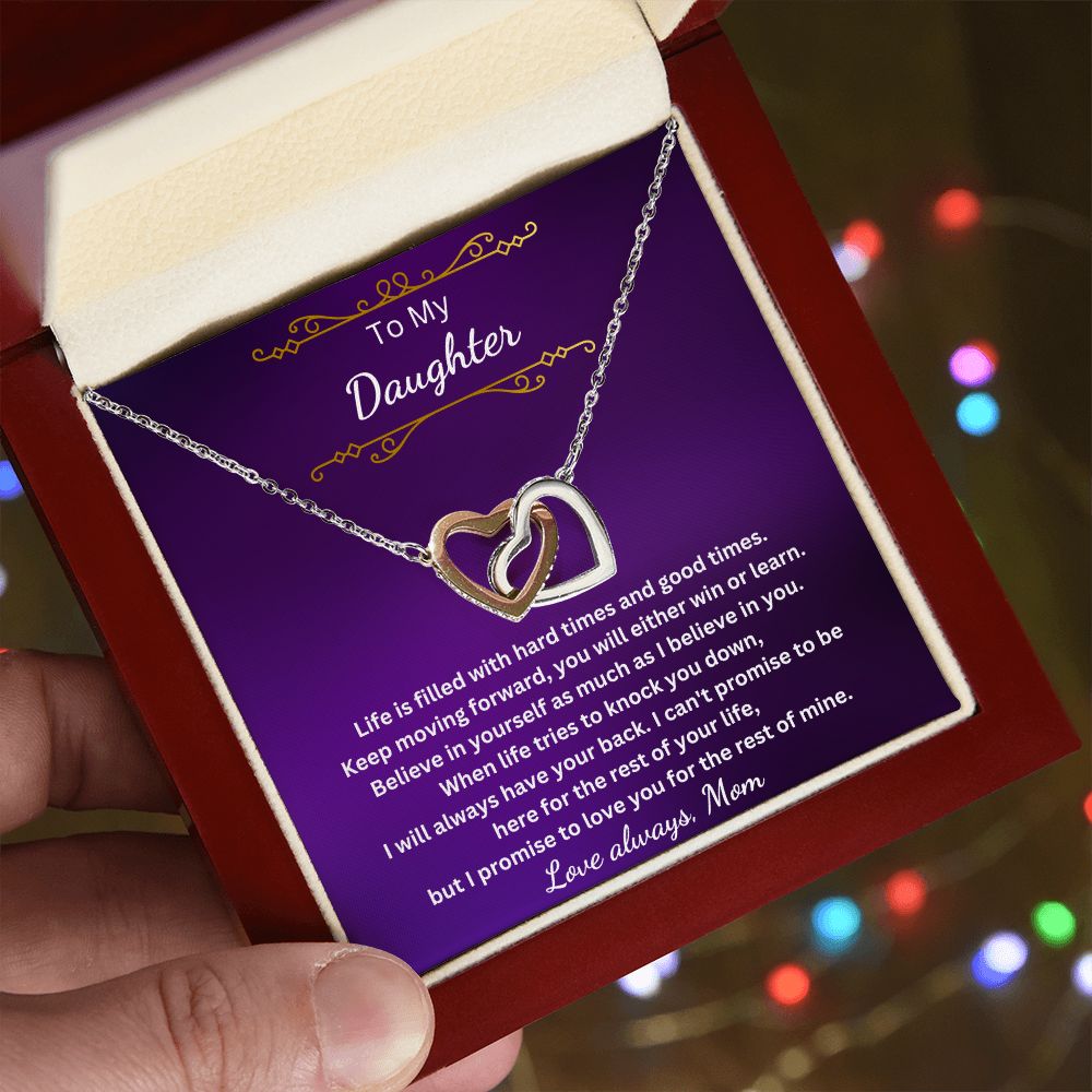 To My Daughter - You either win or learn (Interlocking Hearts necklace)