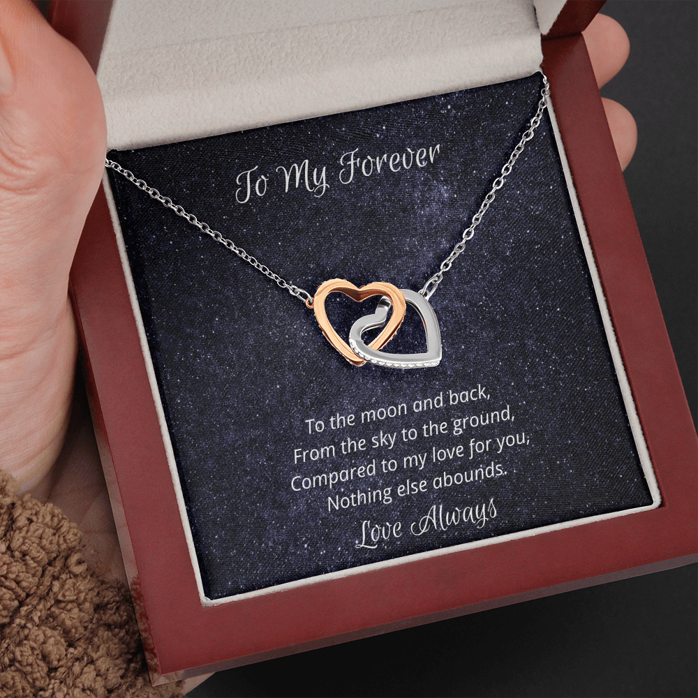 To My Forever. To the moon and back. (Interlocking hearts necklace)