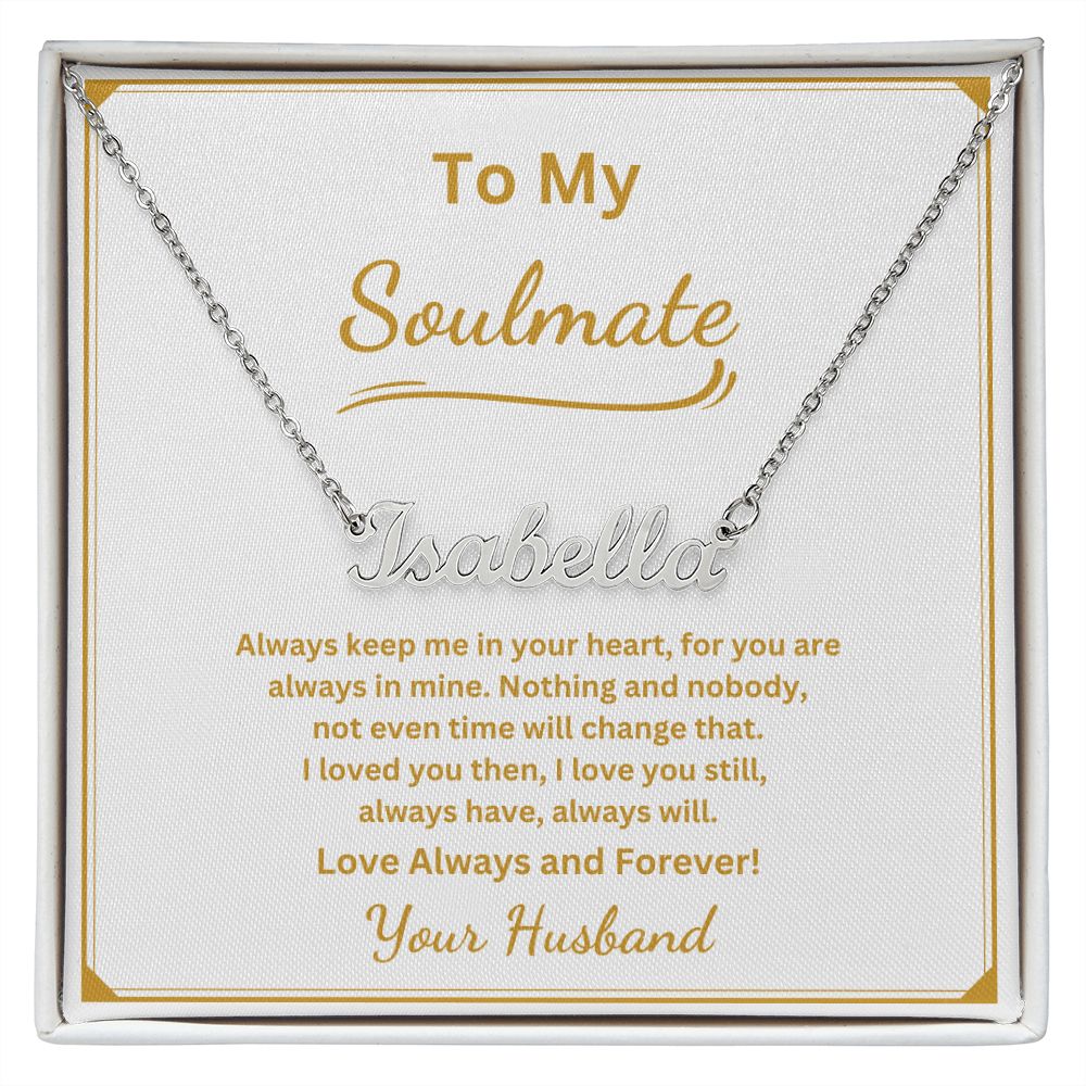To my Soulmate - Always keep me in your heart (Name necklace with message card)